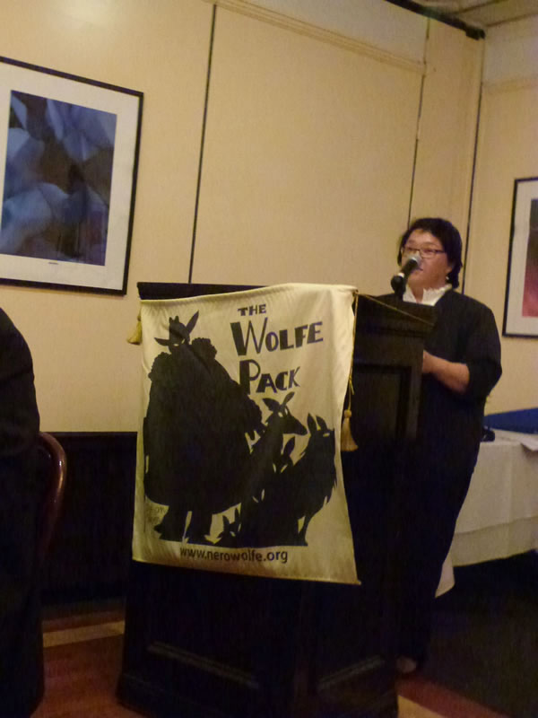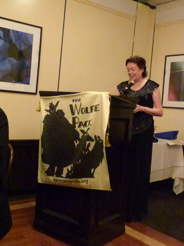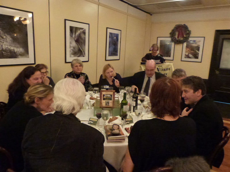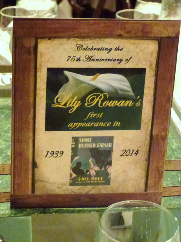 - A meal inspired by the Wolfe Corpus, with wines -- click the image of the banquet program (Cover of MapBack Edition of SOME BURIED CAESAR) to the right to read the full menu and program.
